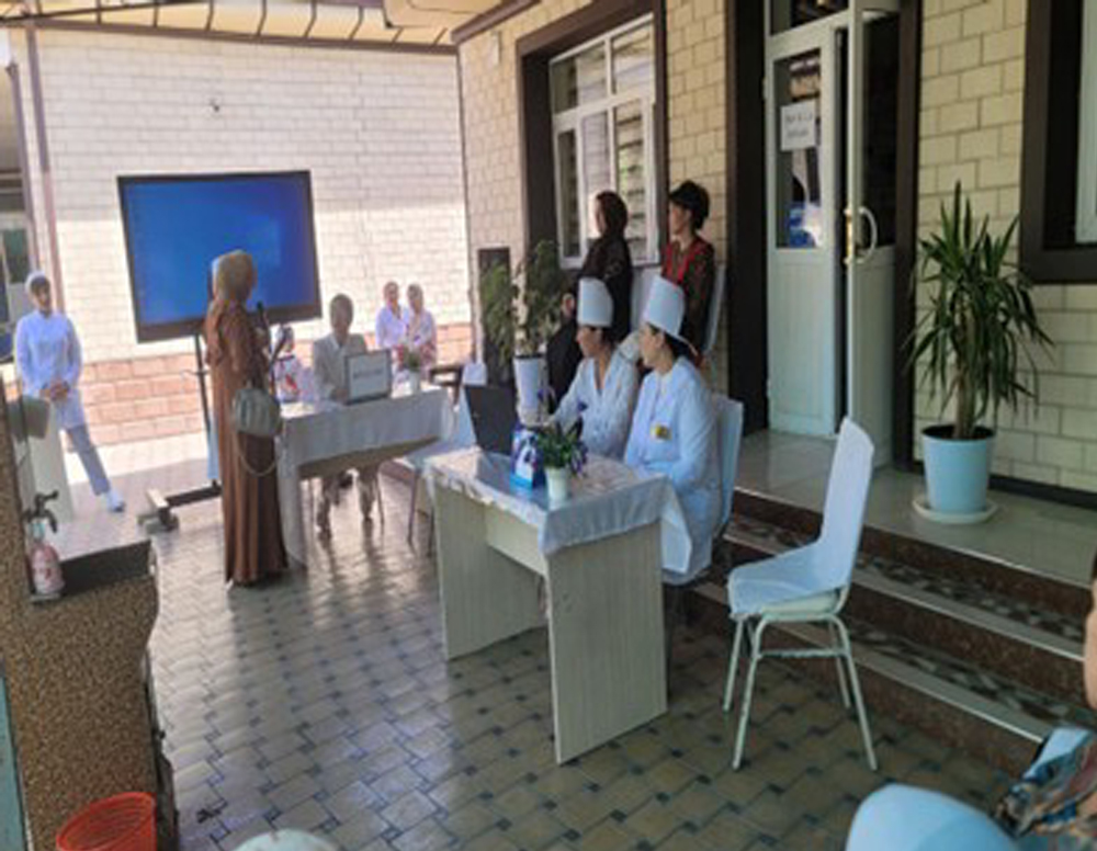 Seminarni Filial rahbari: Turaxodjayeva G.A. Kirish so’zi bilan ochib berdi: “Тиббиётда 90 кунлик ўзгаришлар” дастури бошланиши эълон қилинди. kutish joylarida qulay o‘rindiqlarni ko‘paytirib, navbatni tartibga keltirish, “ona-bola” xonalarini tashkil qilish, nogironligi borlar erkin harakatlanishi uchun kirish-chiqish joylari, xona va yo‘laklarda inklyuziv muhit yaratish, qo‘l yuvishga issiq suvi bor pokiza hozirgi davrda eng muammoli holatlardan biri hojatxonalar tashkil etish uchun tushuncha berib o’tdi.